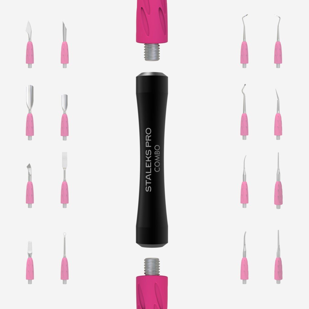 - Rączka do wymiennych części roboczych dla kopytka COMBO UNIQ to innowacyjna modułowa część kopytka, która pozwala profesjonalistom wybierać i łączyć części robocze, aby osiągnąć idealny rezultat. Wybierz dwie ulubione części z szerokiej gamy COMBO UNIQ i wkręć je w uchwyt, tworząc narzędzie dopasowane do swoich potrzeb.
